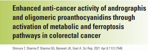 The andrographis used in this study was a specific extract that is standardized to 20% (80 mg) andrographolides, key compounds of this Ayurvedic herb. This extract has previously been shown to enhance the effectiveness of conventional chemotherapy drugs.